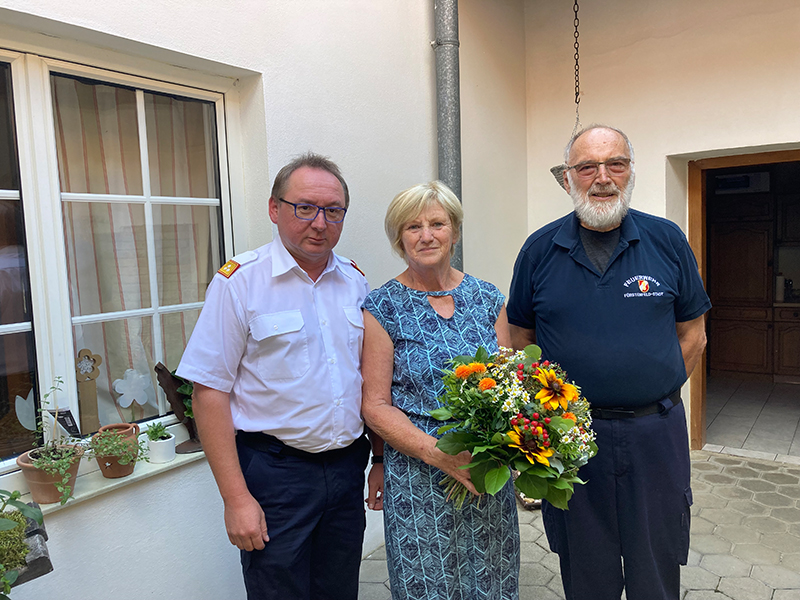Zum 70. Geburtstag unserer Erna Prasch gratulierten Kommandant Gerald Derkitsch und Seniorenbeauftragter Hans Schober recht herzlich. Erna unterstützt unsere Feuerwehr tatkräftig im Küchen- und Versorgungszug.
