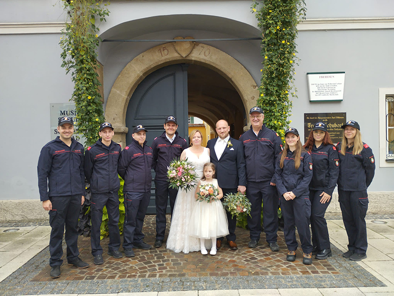 Unser Kamerad Manuel Kern gab Anfang Oktober seiner langjährigen Lebensgefährtin Monja das Ja-Wort. Eine Abordnung unserer Feuerwehr gratulierte ihm dazu.