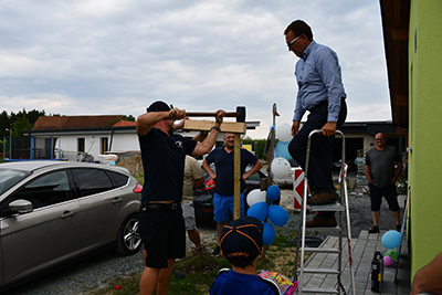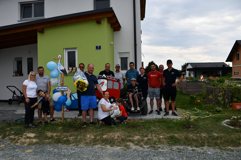 Wir gratulieren unserem Kameraden Manuel Kern und seiner Lebensgefährtin Monja zur Geburt ihres Sohnes Matteo, der gemeinsam mit seiner großen Schwester Marie die 4-köpfige Familie nun komplett macht. Da Matteo sich bei der Geburt sehr beeilte, war das eine perfekte Bewerbung für unsere Feuerwehr - so schnelle Leute können wir immer gebrauchen! Zum traditionellen Storch aufstellen besuchten wir unseren Kameraden und seine Familie. |