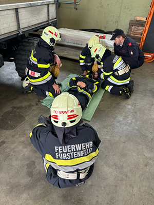 Die Grundausbildung ist wichtiger Teil für die Ausbildung zum Feuerwehrmann oder zur Feuerwehrfrau. Ein Modul davon ist die Grundausbildung 2, die schon traditioniell auch diesmal wieder in Ilz abgehalten wurden. Durch Günter Fürntratt, unserem Beauftragten für die Grundausbildung, wurden wieder einige Kameraden für diese Ausbildung vorbereitet. Moritz Gruber, der seinen Weg von der Feuerwehrjungend in Richtung Einsatzdienst beschreitet, aber auch die beiden Quereinsteiger Yannik Possmann und Christoph Lechner, die derzeit ihren Zivildienst in Fürstenfeld leisten, nahmen an der Schulung teil. Unsere Feuerwehr stellt auch einige Ausbilder an der Grundausbildung. Beim Thema Entstehungsbrandbekämpfung führten Monika Kaplan und Erich Fladerer die Ausbildung der jungen Kameraden durch. Günter Fürntratt und Stefan Pfingstl übernahmen den Punkt Menschenrettung. |