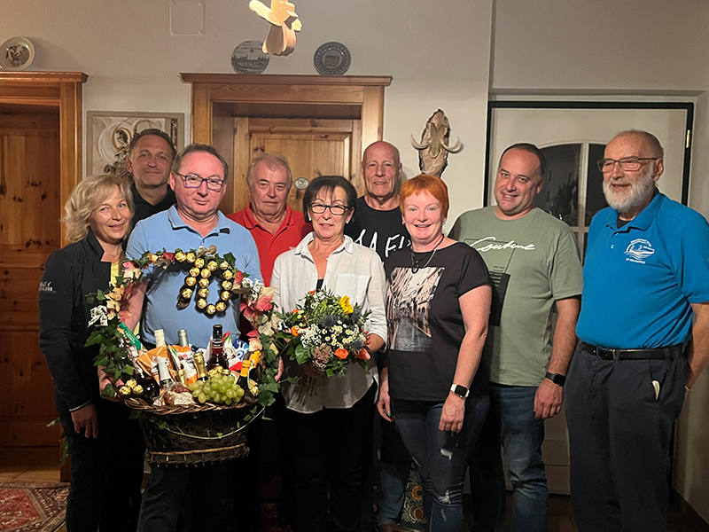 | Christine Feiertag feierte ihren runden Geburtstag, zu dem eine Abordnung des Kommandos und des Küchen- und Versorgungszuges, sowie der Seniorenbeauftragte Hans Schober herzlich gratulierten. Sie ist seit vielen Jahren der "Motor" des Küchen- und Versorgungszuges. Kommandant Gerald Derkitsch und sein Stellvertreter Roland Kracher nutzen die Möglichkeit, sich im Zuge der Geburtstagsfeierlichkeiten bei ihr für die tolle Arbeit zu bedanken. Vom Küchen- und Versorgungszug bekam Christl einen selbst gestalteten Geschenkskorb überreicht. |