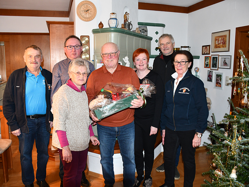 | Unser Kamerad Sepp Mayrhofer feierte seinen 80. Geburtstag. Dazu gratulierte ihm eine Abordnung der Feuerwehr. An der Spitze Kommandant Gerald Derkitsch, sowie Christl Feiertag und Sepp Gollinger als Vertreter des Küchen- und Versorgungszuges und Peter Roch vom Fetzenmarkt-Team. Sepp ist ein sehr aktiver Kamerad und unterstützt die Feuerwehr in hohem Ausmaß, besonders bei den beiden Fetzenmärkten, wo er für die Möbelabteilung verantwortlich ist. |
