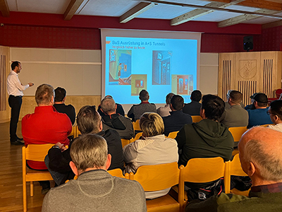 Vortragender war Ing. Stefan Weiss, MSc, der den rund 70 Teilnehmern in der Schulung erläuterte, welche Abläufe im Tunnel automatisiert funktionieren und mit welcher Sensorik eine Tunnelanlage heutzutage ausgestattet sind.