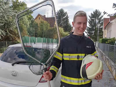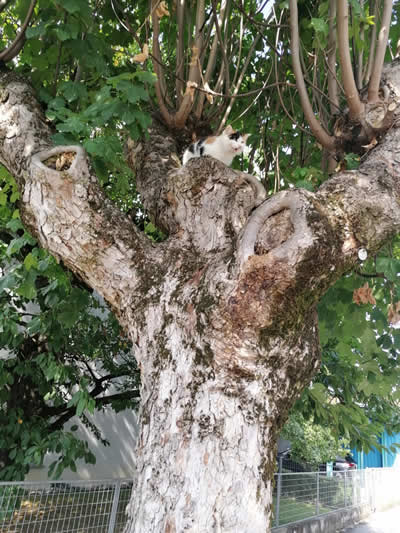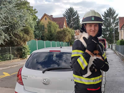 Aufmerksame Passanten bemerkten eine Katze, die bereits mehrere Stunden auf einem Baum saß und sich nicht mehr getraut hat runter zu springen. Sie meldeten sich telefonisch im Rüsthaus und forderten Hilfe an. Zwei junge Kameraden machten sich umgehend mit einer Leiter auf den Weg und retteten das Kleintier vom Baum |