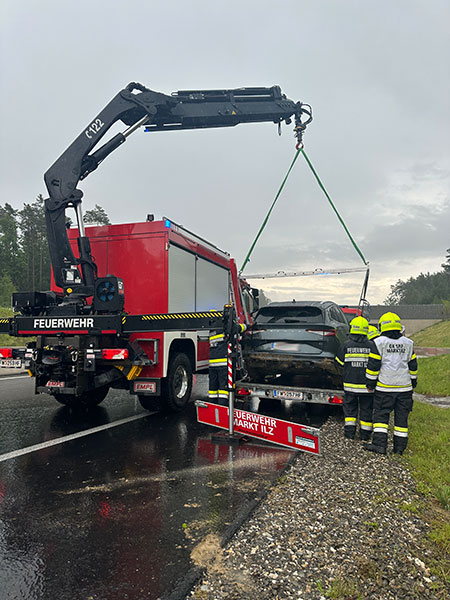 Gemeinsam mit der FF Altenmarkt wurden wir zu einer Fahrzeugbergung auf die Schnellstrasse (S7) alarmiert. Am Einsatzort stellte sich heraus, dass ein Fahrer von der Fahrbahn abgekommen war und im Graben hing, er selbst aber glücklicheweise unverletzt blieb. Die FF Ilz wurde zur Bergung des Fahrzeuge nachalarmiert. |