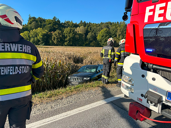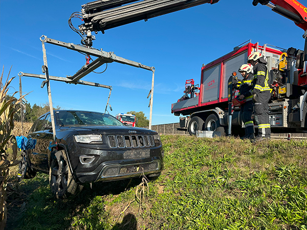 Wir wurden von der Feuerwehr Altenmarkt zu einer Fahrzeugbergung auf de B319 nachalarmiert. Ein PKW war aus unbekannter Ursache von der Straße abgekommen und geriet in einen Acker. Unsere Aufgabe bestand darin, den PKW mit dem Hebekreuz und Ladekran am WLF auf den Abschleppanhänger zu verladen. Anschließend wurde das Fahrzeug gesichert abgestellt. |