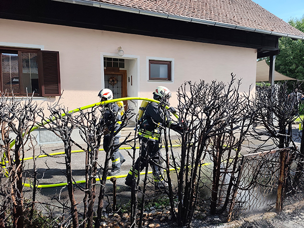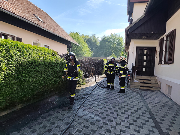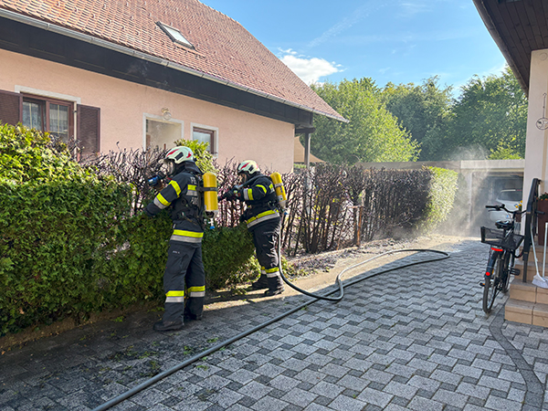 Beim Eintreffen der Einsatzkräfte stand ein Teil der Hecke bereits in Flammen. Durch das schnelle Eingreifen konnte der Brand rasch gelöscht und eine Ausbreitung auf die angrenzenden Gebäude verhindert werden. Nach kurzer Zeit war der Einsatz erfolgreich beendet und die Einsatzbereitschaft wiederhergestellt. |