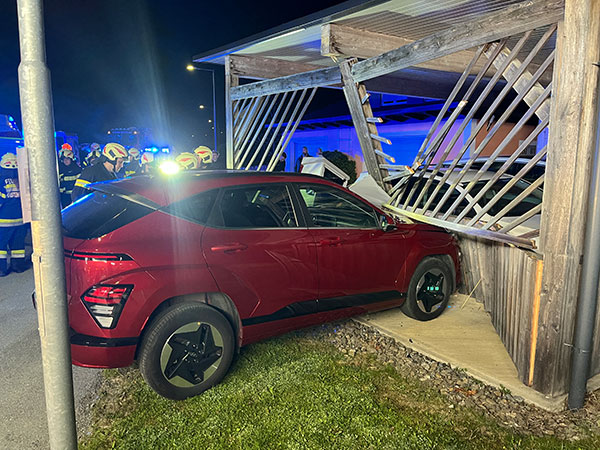 | Zusammen mit der Feuerwehr Übersbach wurden wir zu einem Verkehrsunfall in die Berkammstraße gerufen, bei dem eine Person eingeklemmt war. Ein PKW prallte aus bisher unbekannten Gründen gegen zuerst gegen ein Radargerät und in weiterer Folge in ein Carport. Der Fahrer wurde aus dem Fahrzeug gerettet und an das Rote Kreuz übergeben. Anschließend wurde das Fahrzeug mittels Seilwinde geborgen. |