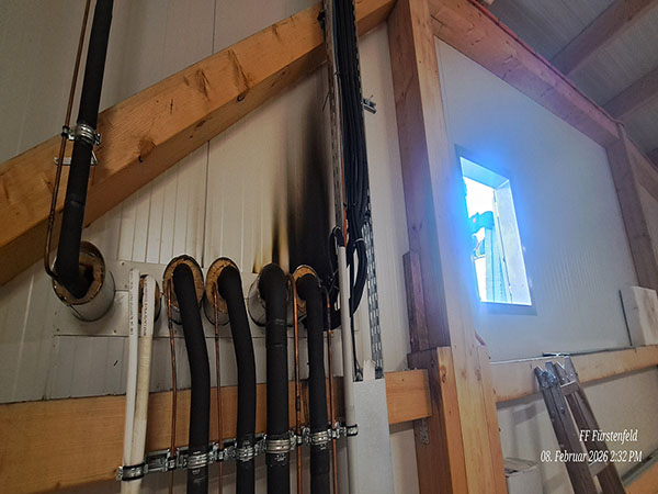 Kurz nach Mittag wurde die Feuerwehr Fürstenfeld gemeinsam mit der Feuerwehr Altenmarkt zu einem Zimmerbrand in einem Industriebetrieb alarmiert. Beim Eintreffen der Einsatzkräfte stellte sich heraus, dass ein Kabelbrand im Bereich der PV-Anlage vorlag.